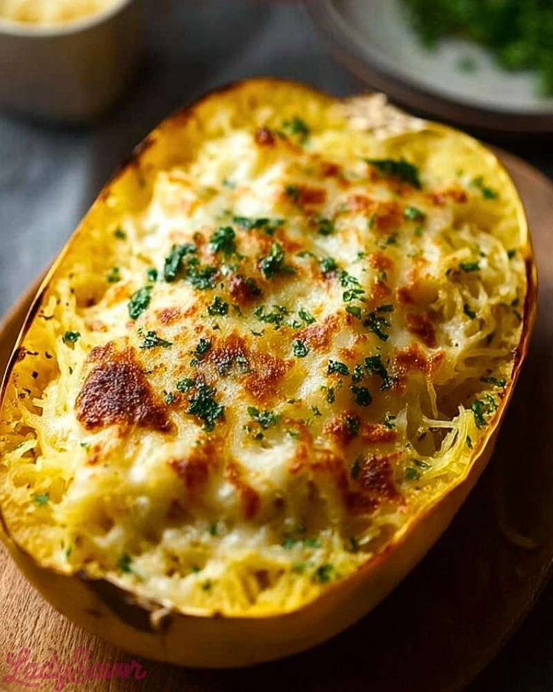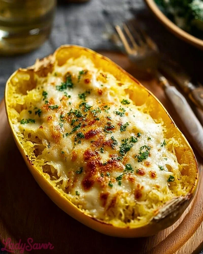 Roasted Spaghetti Squash With Alfredo Sauce and Cheese