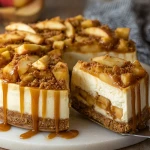 Perfect for the holidays, dinner parties, or just when you’re in the mood for something extraordinary, this cheesecake doesn’t just look impressive—it tastes unforgettable. The textures and flavors blend seamlessly, from the tender baked apples and crispy crumble to the silky cheesecake beneath. It’s the kind of showstopper dessert that earns compliments before the first slice is even served.