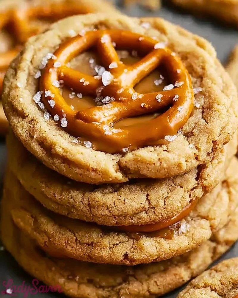 These cookies are best enjoyed slightly warm, when the caramel is still soft and the pretzels retain their crunch. If you’re making them for an event or gifting, you can prepare the dough in advance and refrigerate it for up to 48 hours. This actually deepens the flavor and improves the texture. Be generous with the caramel drizzle, but make sure cookies are cooled to prevent it from melting right off.