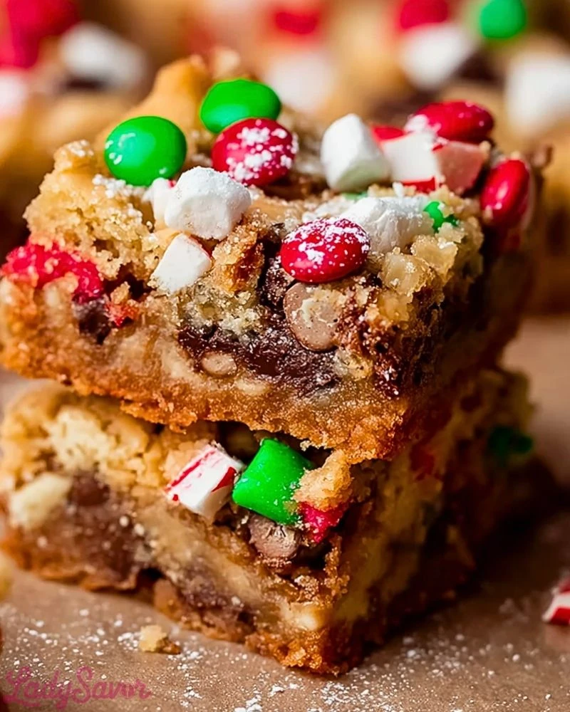 These cookie bars are all about flexibility and fun. You can toss in your favorite mix-ins, making each batch uniquely yours while still delivering that classic buttery, chewy base everyone loves. They come together quickly in one pan, which means less mess and more time enjoying the holiday magic. The balance of sweet chocolate, salty pretzels, and crunchy candies creates a flavor explosion that keeps you reaching for another bite.
