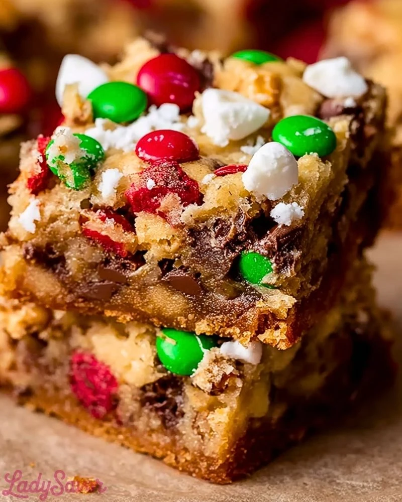 Perfect for holiday gatherings, cookie swaps, or a cozy night in, these cookie bars capture the playful spirit of the season. They’re rich, chewy, and loaded with texture, offering a bakery-style treat without the fuss of scooping individual cookies. Whether you’re baking with kids or whipping up a quick dessert for guests, this recipe brings joy in every square.