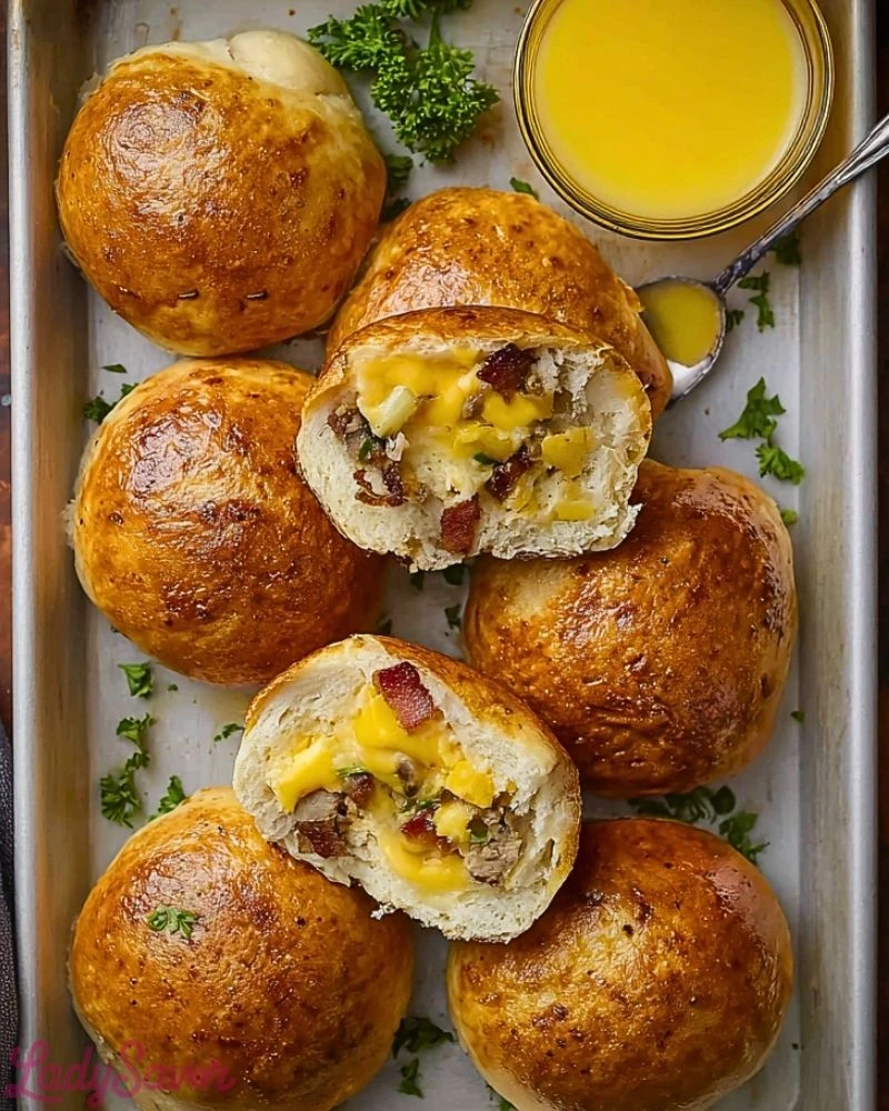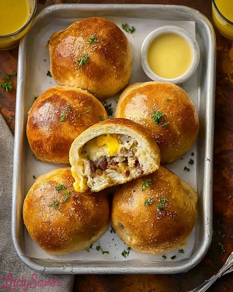 Golden, pillowy soft, and oozing with a hearty breakfast filling — these Simple & Delicious Breakfast Bombs are exactly what your morning routine has been missing. Imagine biting into a warm, buttery bread roll only to find savory sausage, fluffy scrambled eggs, and gooey melted cheese packed inside. They’re like your favorite breakfast sandwich, but even better, all wrapped up in a convenient, grab-and-go pocket of joy.
