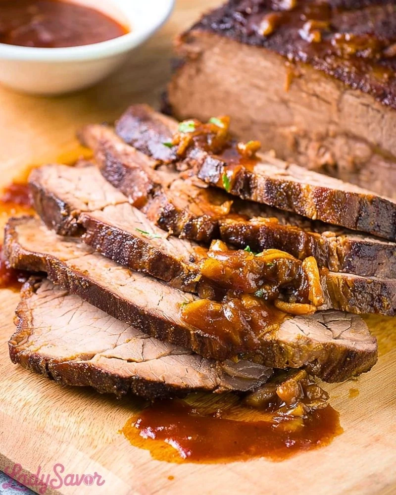 Serve the brisket hot with extra barbecue sauce on the side. It pairs wonderfully with mashed potatoes, roasted vegetables, rice, or on a sandwich bun with slaw. Store leftovers with the juices to keep them moist and flavorful.