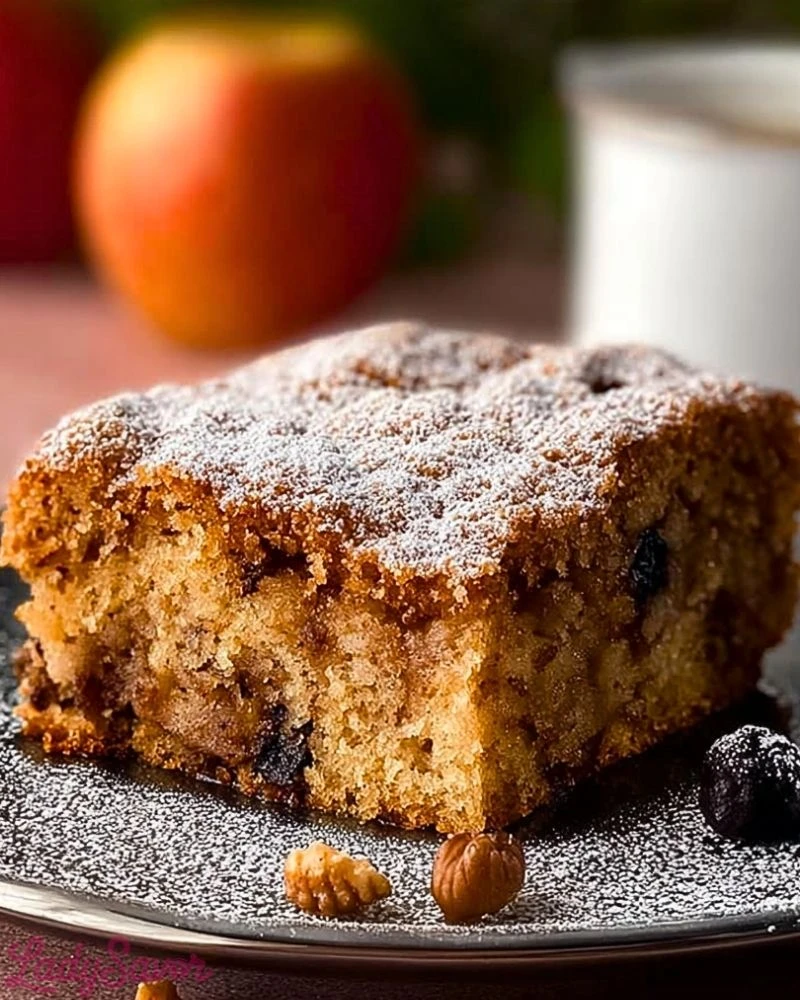 Southern Apple Cake is a perfect make-ahead dessert. In fact, the flavor tends to deepen the next day as the spices meld and the moisture from the apples fully distributes throughout the cake. If you prefer a denser texture, let it rest overnight before serving. For a more decadent touch, drizzle it with a cream cheese glaze or caramel sauce. This recipe is also highly adaptable — you can swap out the nuts for shredded coconut or omit the raisins entirely if you prefer a simpler taste.