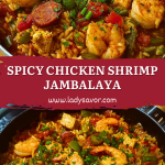 Keywords: spicy jambalaya, chicken shrimp jambalaya, Southern one pot recipe, easy dinner idea, Cajun rice dish