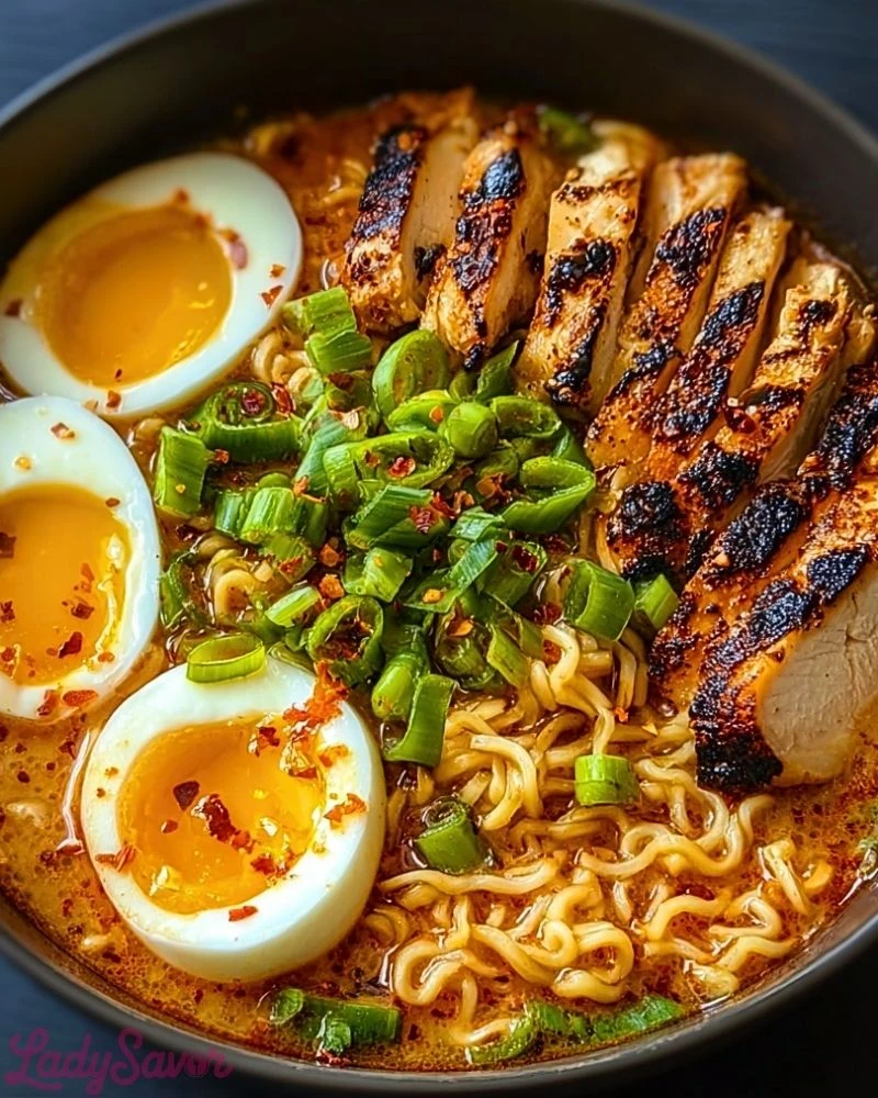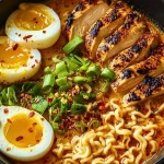 This Spicy & Creamy Chicken Ramen is the ultimate comfort food that feels gourmet without the hassle. With a bold chili kick, velvety broth, juicy chicken, and jammy soft-boiled eggs, this dish brings together everything you love about ramen in one easy recipe. Perfect for a quick dinner, a cozy lunch, or satisfying late-night cravings, it’s also a great fit for those seeking dinner ideas or easy recipes with a gourmet twist. Whether you’re after a hearty bowl of warmth or simply exploring bold food ideas, this ramen hits all the right notes.