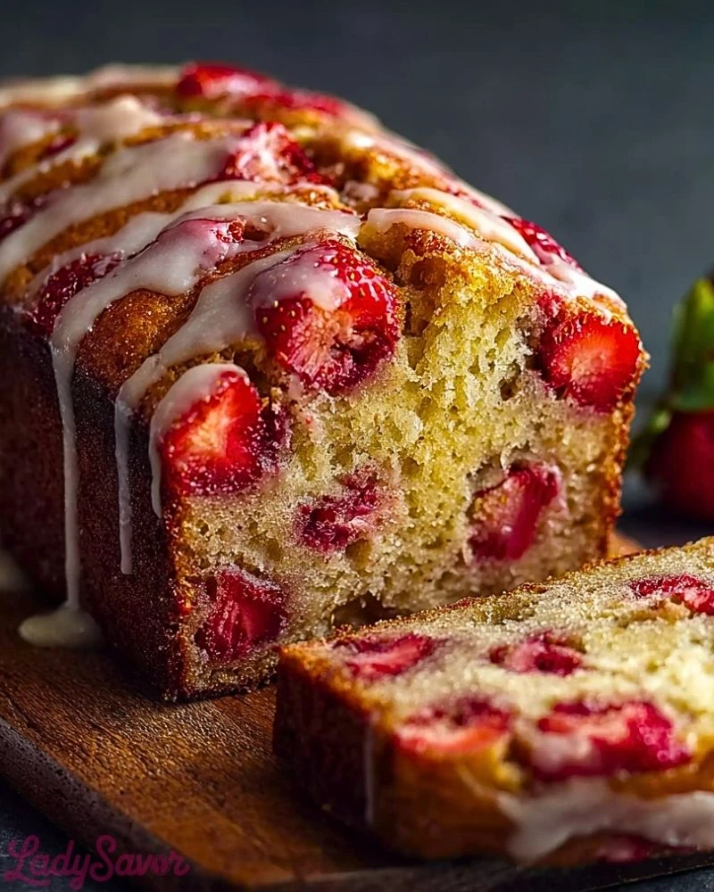 This bread is the perfect harmony of fruit and comfort. It’s soft and fluffy on the inside, slightly crisp on the outside, and studded with sweet-tart strawberries in every slice. It’s also incredibly easy to make—no mixer needed, just a bowl and spoon.