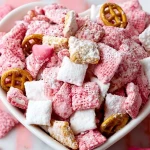 This Strawberry Cheesecake Puppy Chow is a sweet, crunchy, no-bake treat that’s perfect for any occasion. With creamy white chocolate, bright strawberry flavor, and a hint of graham cracker crunch, it delivers all the flavors of a classic cheesecake in a fun, snackable form. Whether you’re looking for a quick breakfast treat, easy dessert, party snack, or creative food idea, this easy recipe is both eye-catching and irresistibly delicious.