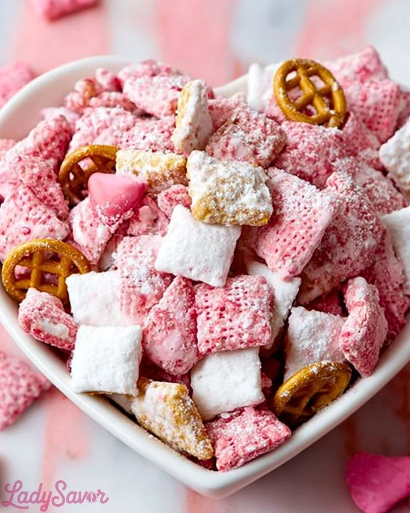 This recipe hits that sweet spot between easy and indulgent. It doesn’t require baking, which means less time in the kitchen and more time enjoying the results. The strawberry cheesecake flavor adds a fun upgrade to traditional puppy chow, making it feel fresh and a little more special.