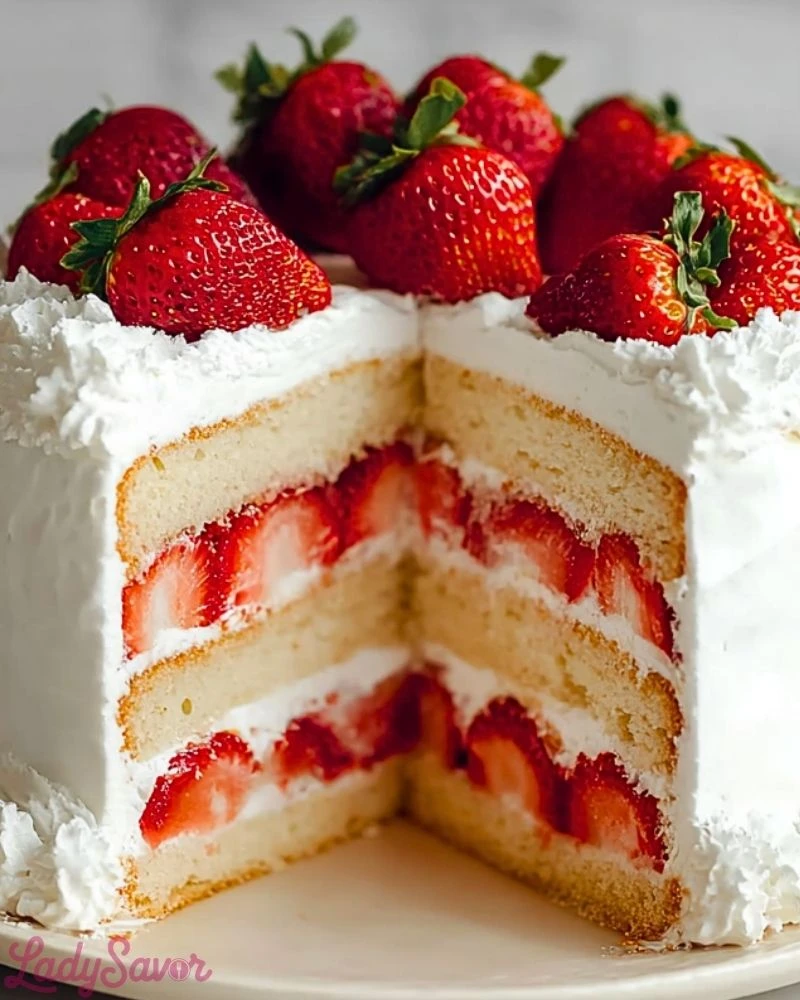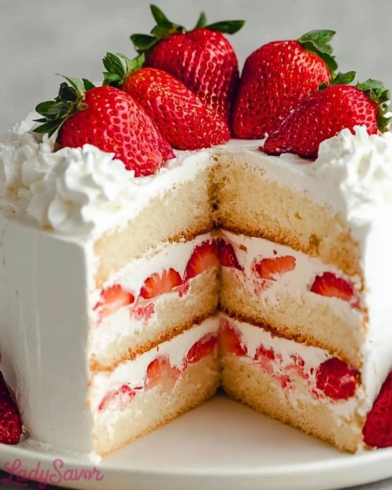 This cake brings together the richness of a classic cream cake with the freshness of strawberries, creating a dessert that feels indulgent without being overwhelming. The soft crumb absorbs just enough moisture from the fruit, giving you that melt-in-your-mouth texture.