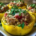 Stuffed Patty Pan Squash with Sausage and Rice is one of those feel-good, comfort meals that never fails to impress. Whether you’re feeding your family on a weeknight or serving guests at a dinner party, this dish is both approachable and elegant. With its beautiful presentation, customizable ingredients, and satisfying flavor, it’s bound to become a regular in your seasonal rotation.