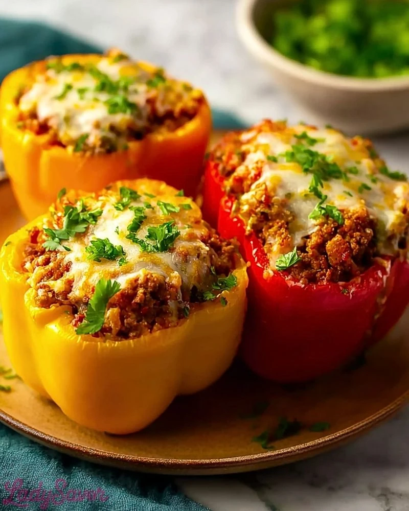 Perfectly seasoned beef, aromatic herbs, and melted cheese meld together inside the natural sweetness of roasted peppers. The result? A warm, cheesy, protein-packed meal that feels indulgent but comes together with everyday ingredients. Whether you’re meal prepping, feeding a crowd, or looking for an easy dinner idea, this recipe checks all the boxes.