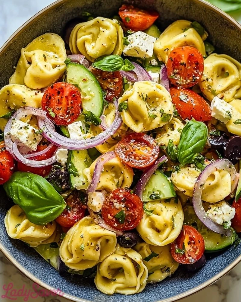 Cook the tortellini until just al dente to prevent it from becoming mushy when mixed with the other ingredients. Rinse it under cold water to cool it quickly and stop the cooking process. For maximum flavor, slice your vegetables uniformly so every bite is balanced. Let the salad chill in the fridge for at least 15 minutes after mixing—it allows the flavors to meld beautifully. Finally, drizzle the dressing just before serving to keep the veggies crisp and vibrant.