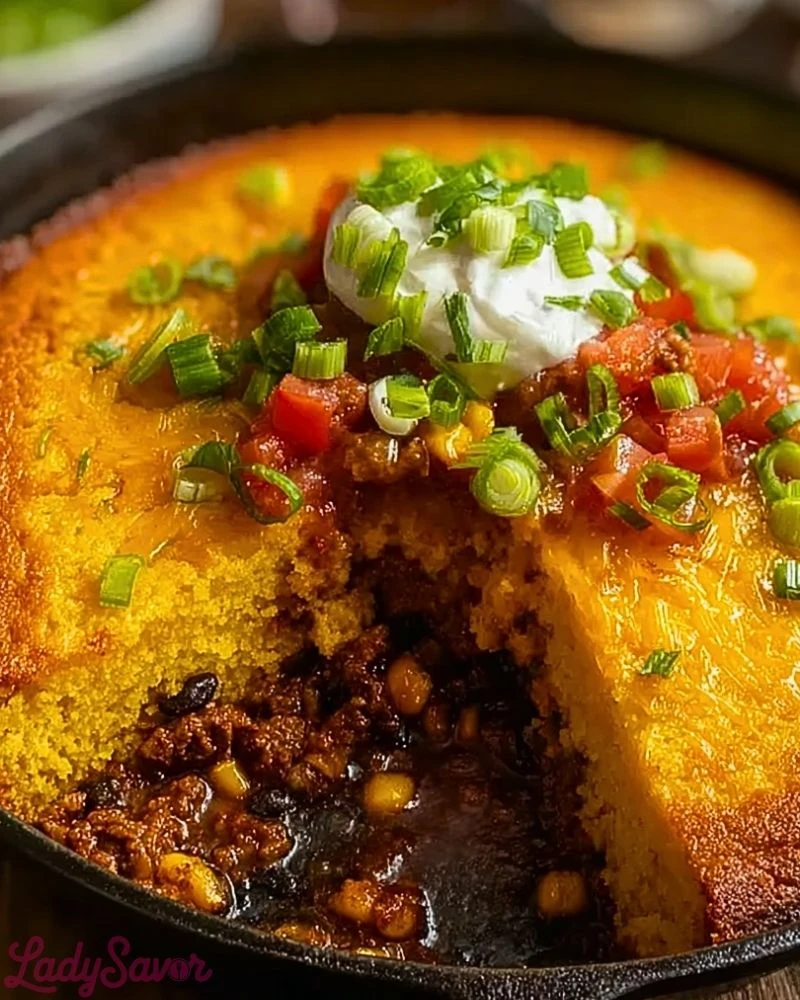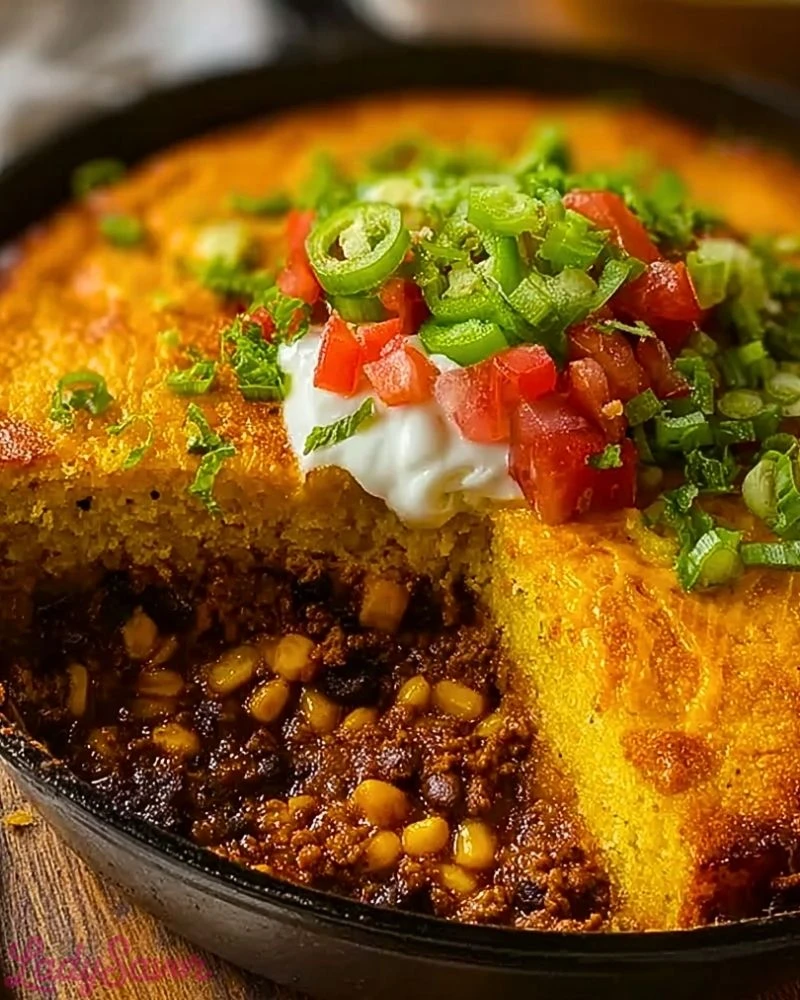 Everything in this list balances texture and flavor—the spicy-sweet beef base contrasts beautifully with the soft, golden cornbread crust. The toppings are optional but give the dish a fresh, Tex-Mex finish.