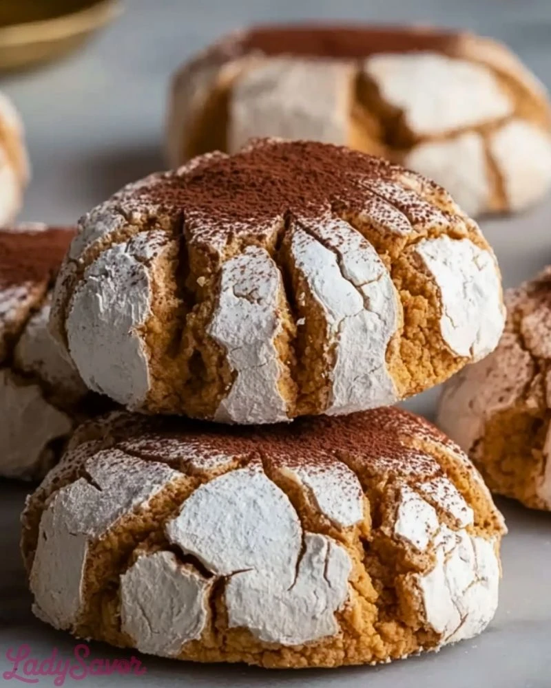 Tiramisu Crinkle Cookies are best enjoyed within a few days of baking when their centers are still soft and flavorful. For an extra indulgent version, consider adding a touch of dark chocolate chips or a swirl of mascarpone filling in the center. These cookies can also be made ahead—just freeze the dough balls before rolling them in sugar.