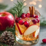 This drink captures the spirit of the holidays in a glass. It’s light, refreshing, and beautifully festive with its vibrant cranberries and apple slices. The rosemary and cinnamon add a subtle seasonal touch without overpowering the drink.