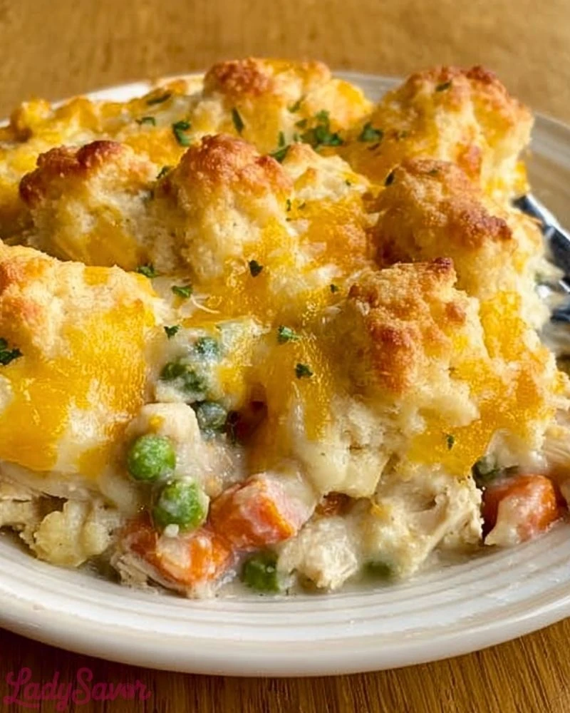 Golden, cheesy, and bubbling with comforting flavors, this Yummy Chicken and Biscuit Cobbler is the definition of cozy food done right. Tender chunks of rotisserie chicken are smothered in a creamy sauce loaded with colorful mixed vegetables, then topped with buttery biscuit dough that bakes to a perfect golden crisp. It’s hearty, satisfying, and exactly what your soul craves on a chilly evening or a lazy Sunday afternoon.