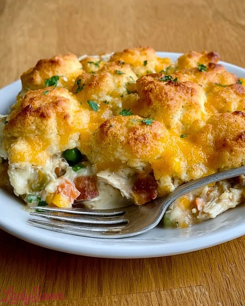 What makes this dish special is how effortlessly it comes together while delivering the kind of flavor that tastes like you’ve been cooking all day. Using pre-cooked chicken and frozen vegetables cuts down on prep, but the result is still rich, homemade goodness. The biscuits soak up the savory sauce just enough while maintaining a beautifully crisp top—every bite is a perfect balance of soft and crunchy textures.